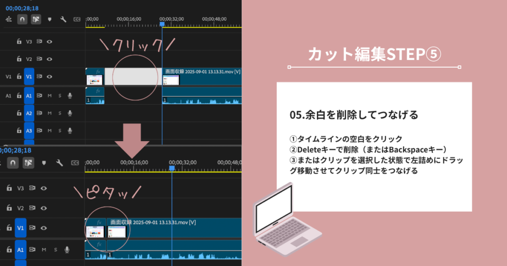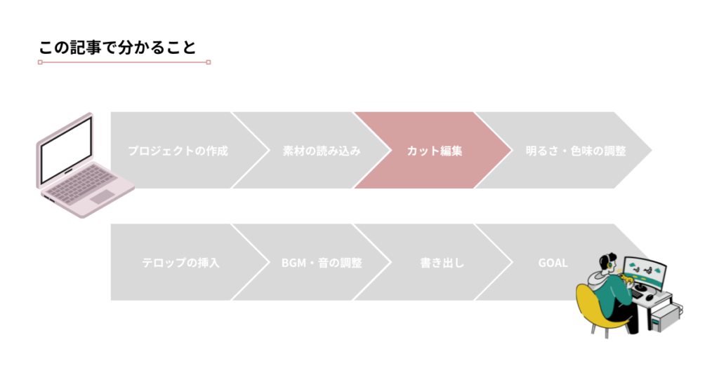 この記事で基本の操作を覚えるだけで一気にカット編集ができるようになります。